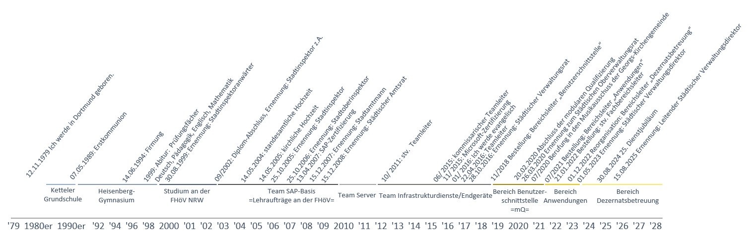 Im Hauptberuf helfe ich dabei, die Stadtverwaltung Dortmund zu digitalisieren. Einige Jahre habe ich auch an der heutigen Hochschule für Polizei und Verwaltung NRW (damals Fachhochschule für öffentliche Verwaltung) als Dozent unterrichtet.